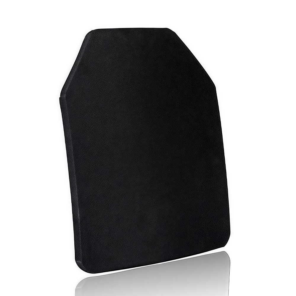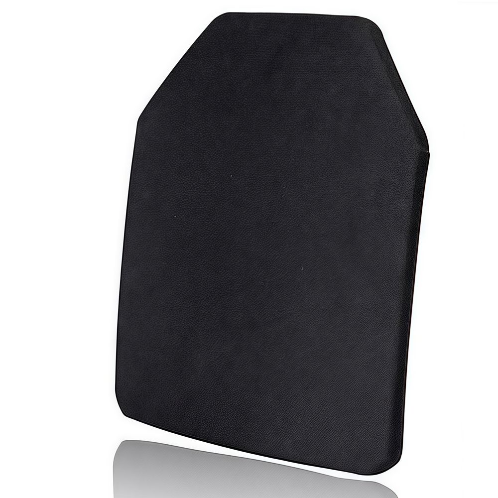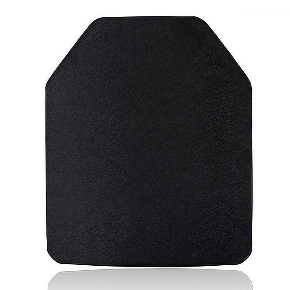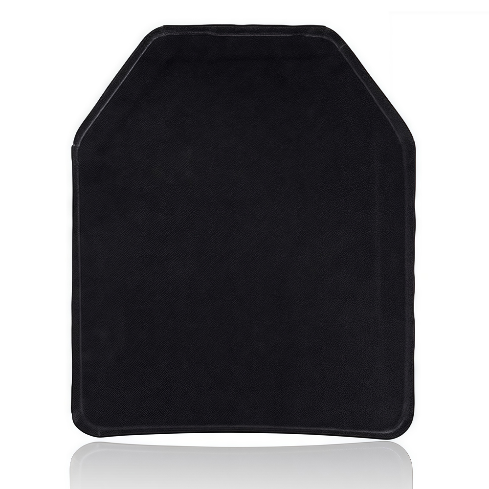 سمكها ٢٥±٢ مم يشمل طبقة HPPE معززة (مصنوعة بتقنية الغزل الهلامي، وهي أقوى بخمس عشرة مرة من الفولاذ وزنًا). تتشوه هذه الطبقة قليلًا لتبديد ١٠٠٪ من الطاقة الحركية المتبقية للرصاصة - دون الحاجة إلى طبقة درع إضافية ناعمة. يتم احتواء الحطام بالكامل داخل الصفيحة، مما يمنع أي إصابة ثانوية لمرتديها.
