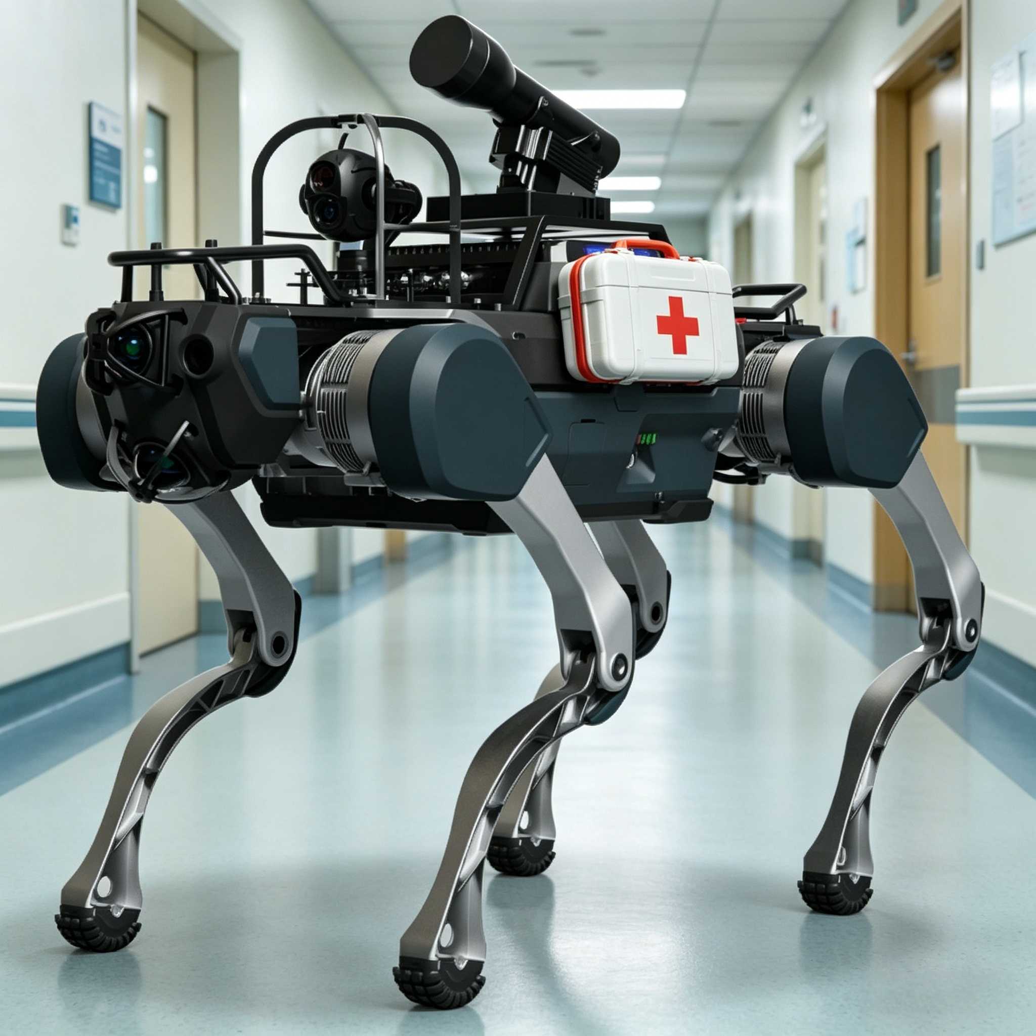 The small model (12.2kg) is agile and capable of jumping, making it ideal for indoor reconnaissance and tight-space operations.